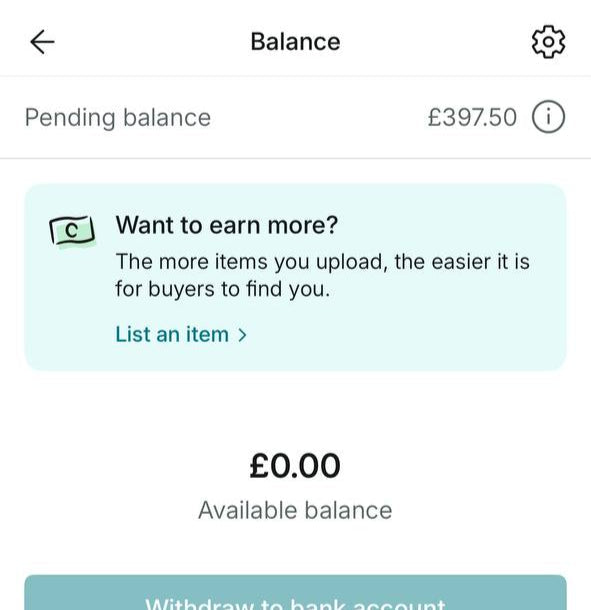 Almost £400 in my pending balance, after starting selling 2 days ago...